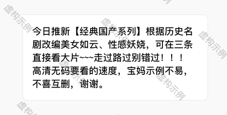 3.3 直接或间接的色情擦边类信息内容,即虽然并未明示,但带有色情、性的意味,容易导致他人联想到色情、性相关事物的内容,例如性骚扰、成人体验店、原味物品、性相关恶搞低俗文案等。